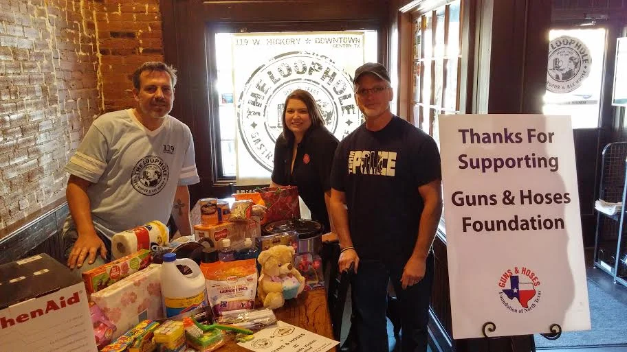 Over the weekend we made our way to The Loophole Pub in Denton, TX to accept a check of just over $1,000 form the owner Charlie. From the kindness of his heart Charlie decided to donate proceeds from Lakewood Brewing Beer sold at the pub throughout the month on January to Guns & Hoses ,for their relief efforts of the tornados that ripped through North Texas earlier this year. Charlie also challenged his employees to do the same, and donate any house hold items they thought a family in need could use. We are beyond grateful for the folks of The Loophole Pub, and we couldn't thank you enough for seeing our vision as a foundation.